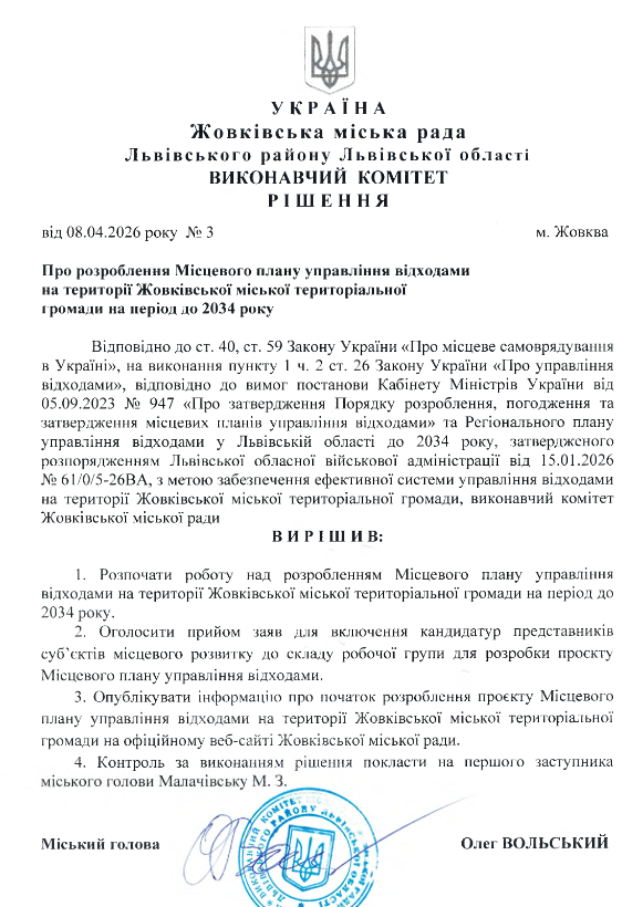 Відповідно до законодавства рішенням про провадження даної планованої діяльності буде - отримання: Дозволу на викиди забруднюючих речовин в атмосферне повітря стаціонарними джерелами (вид рішення відповідно до частини першої статті 11 Закону України “Про оцінку впливу на довкілля”) що видається - Департаментом екології та природних ресурсів Львівської ОДА (орган, до повноважень якого належить прийняття такого рішення)