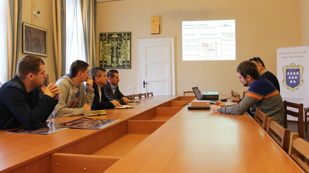 Насамперед делегація побувала на прийомі у міського голови Дрогобича Тарас Кучми, який коротко розповів історію запровадження smart-управління містом, поділився досвідом контрою роботи посадовців зі зверненнями громадян через електронних сервісів, зокрема «Відкрите місто».Відтак для гостей презентацію концепції проекту «Розумне місто», відкритих даних та прозорості діяльності органу місцевого самоврядування провели керівник КУ «Інститут розвитку міста» Володимир Кондзьолка та начальник відділу ІТ та аналізу Станіслав Гайдер.У ході перезнтації гостям розповіли про роботу з відкритості даних, відкритий бюджет та бюджетну мапу, про електронні сервіси, запити, звернення, петиції мобільний додаток, сенсорні кіоски, поіменне голосування у раді та виконкомі, про фінансовий моніторинг закупівель, про мапи комунальних об’єктів, зовнішньої реклами, МАФів, атракціонів, виїзної, торгівлі, запровадження енергоменеджменту, електронної медицини та освіти, облаштування Wi-fi зон та відеокамер у місті та інше.