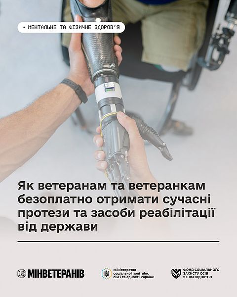 Як ветеранам та ветеранкам безоплатно отримати сучасні протези та засоби реабілітації від держави