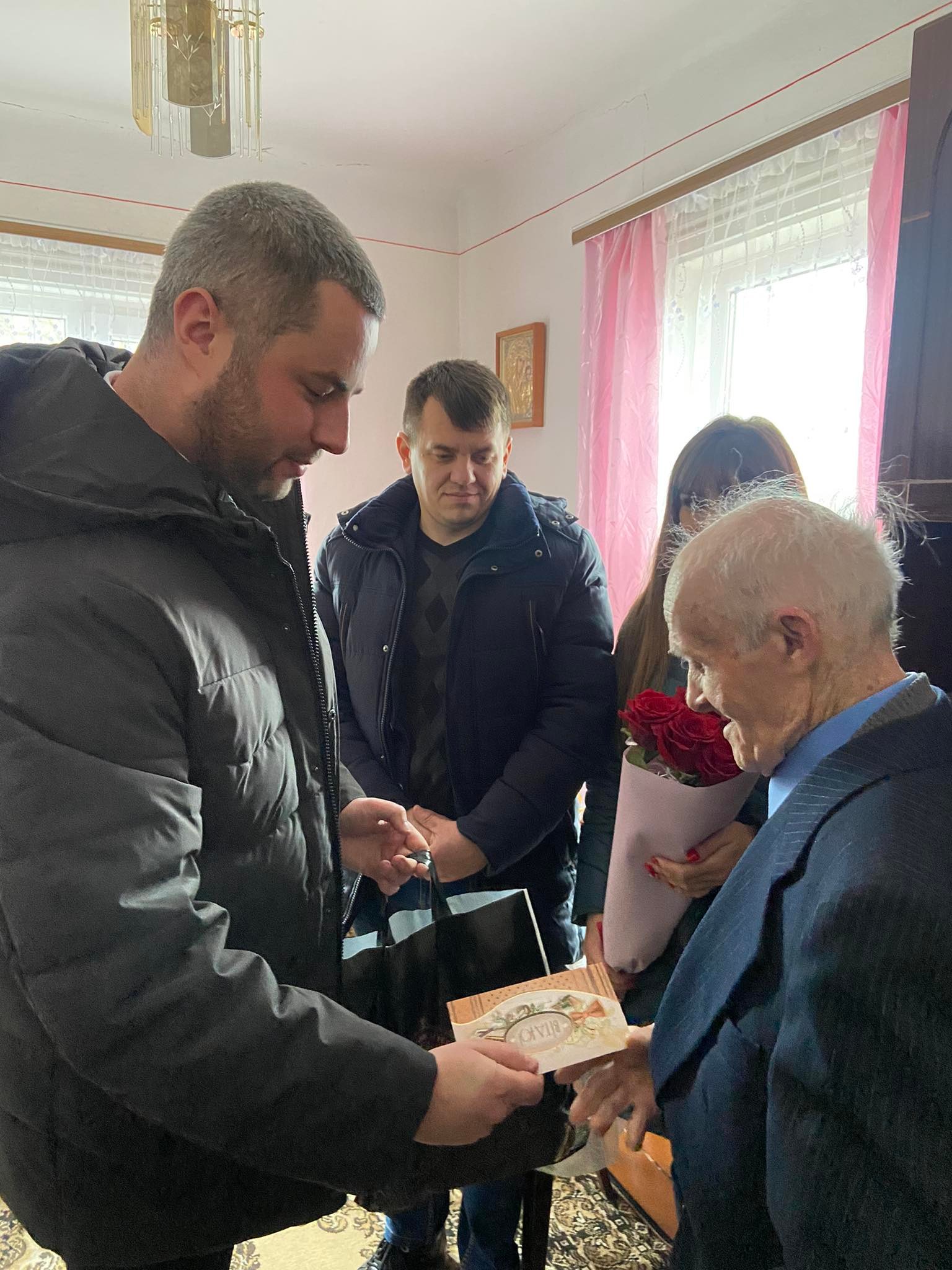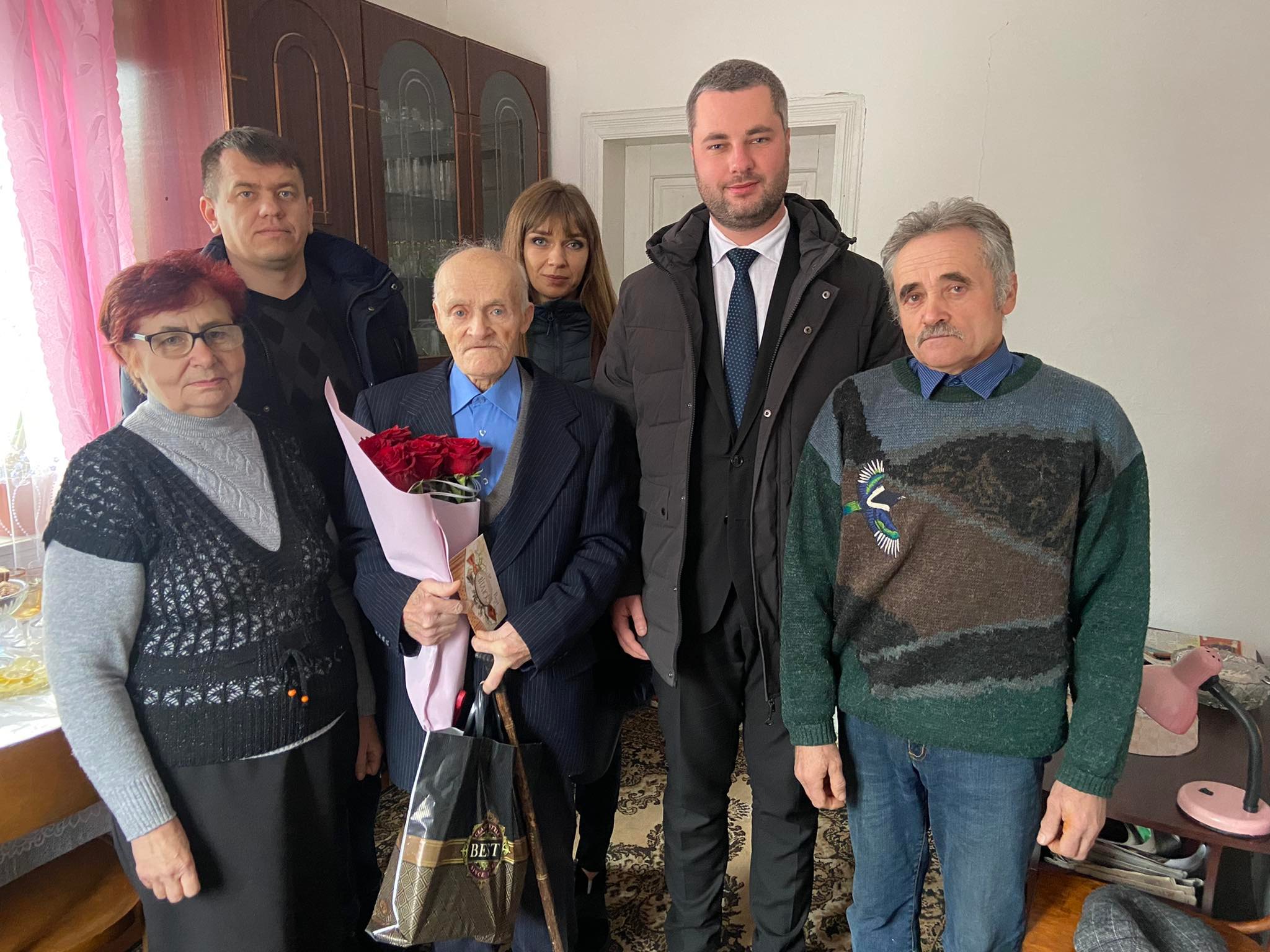 Завітав привітати іменинника міський голова Oлег Вольський, разом з начальником відділу соціального захисту Ігор Гуменюк та керуючою справами Жовківської міської ради Мар'яна Цимбала.
