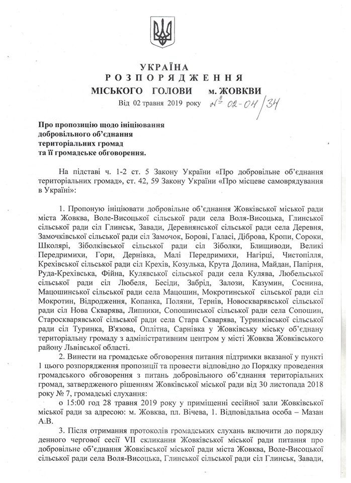 Перші кроки для ОТГ Наше місто робить черговий вагомий крок до створення спроможної Жовківської об'єднаної територіальної громади. Своїм розпорядженням Жовківський міський голова ініціював добровільне об'єднання та організацію громадського обговорення. Наступним кроком є саме процес громадського обговорення пропозицій щодо об'єднання громадою міста. Тож запрошуємо долучатись до даного процесу вашими пропозиціями за контактами: info@zhovkva-rada.gov.ua; 21-264 Ваша думка важлива! 02.05.2019 | Автор: Мазан Андрій Категорія: Загальні новини