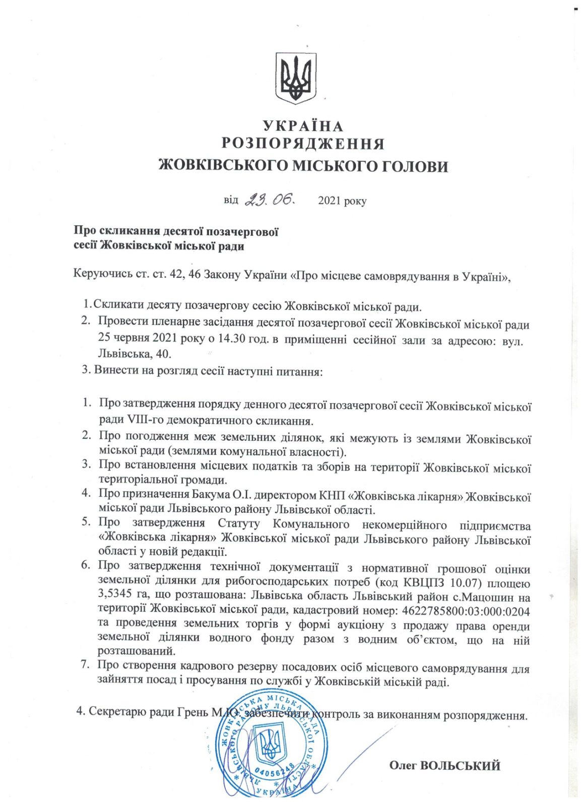 Скликання 10-ї сесії Жовківської міської ради 25 червня 2021 року о 14 годині 0 хвилин, відбудеться засідання десятої сесії Жовківської міської ради в сесійній 3залі за адресою м. Жовква, вул. Львівська, 40 23.06.2021 | Автор: Жовківська мр Категорія: Загальні новини