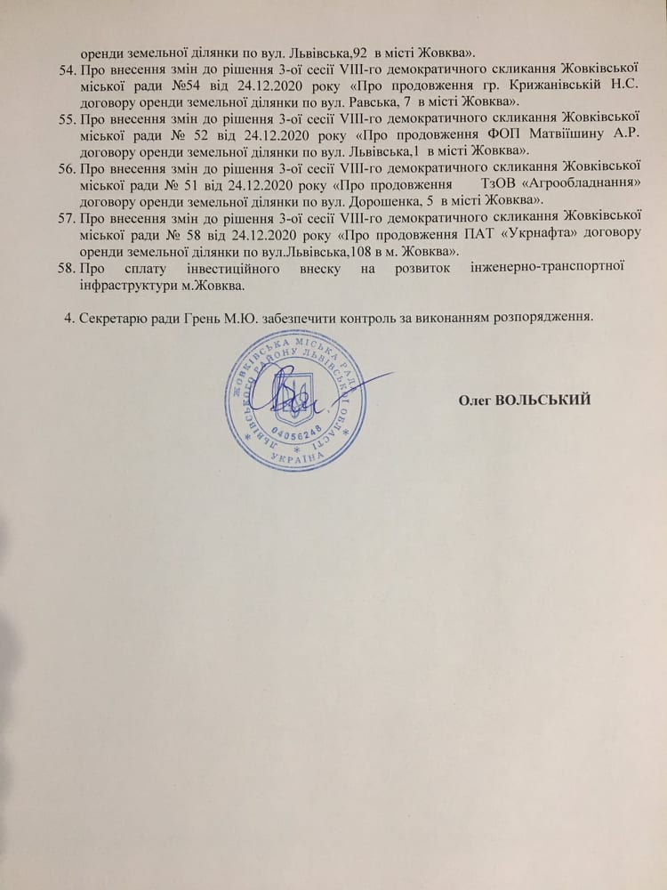Скликання 4-ї сесії Жовківської міської ради 26 січня 2021 року о 10 годині 00 хвилин, відбудеться пленарне засідання четвертої сесії Жовківської міської ради в сесійної зали за адресою м. Жовква, вул. Львівська, 40 16.01.2021 | Автор: Жовківська мр Категорія: Загальні новини