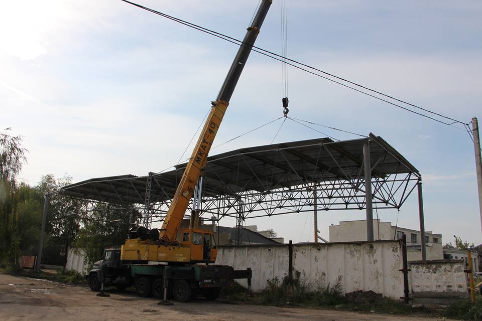 Навіс встановили за допомогою будівельного крана та автовишки. Його площа складає 450 кв. м.