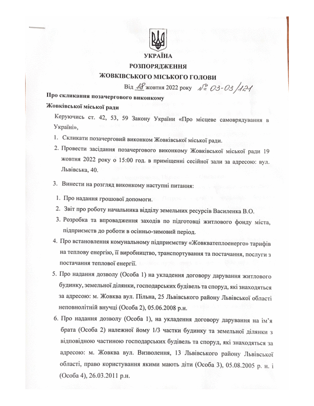 19 жовтня 2022 року о 15 годині 00 хвилин, відбудеться засідання позачергового виконавчого комітету Жовківської міської ради в сесійній залі за адресою м. Жовква, вул. Львівська, 40.