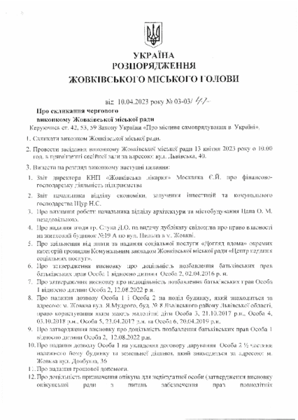 Засідання виконавчого комітету 13 квітня 2023 року 13 квітня 2023 року о 14 годині 00 хвилин, відбудеться засідання виконавчого комітету Жовківської міської ради в сесійній залі за адресою м. Жовква, вул. Львівська, 40. РОЗПОРЯДЖЕННЯ 10.04.2023 | Автор: Жовківська мр Категорія: Загальні новини