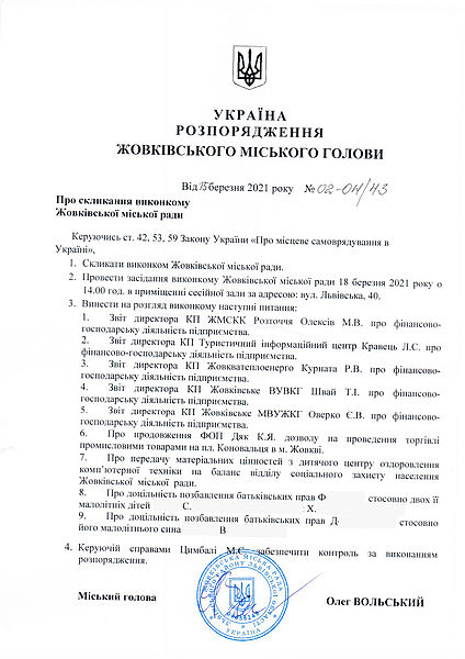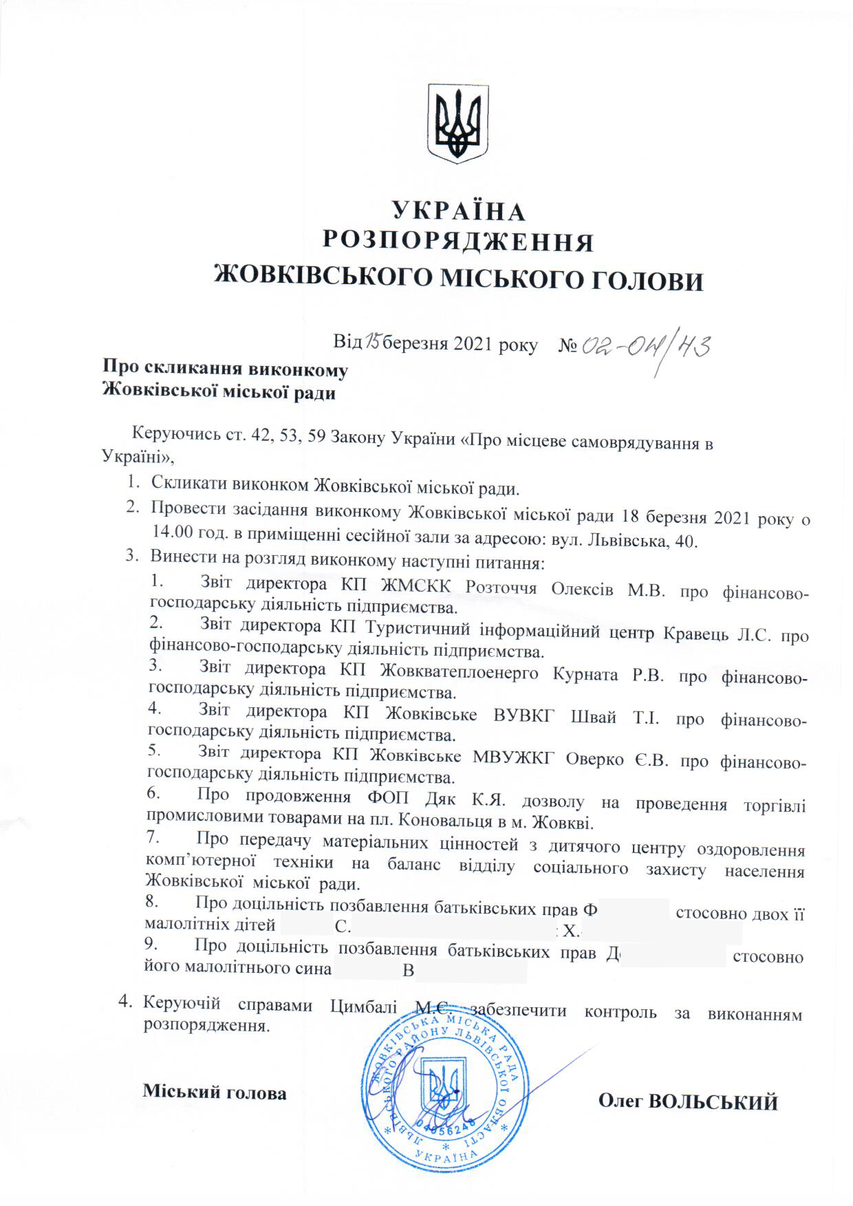 Засідання виконавчого комітету 18 березня 2021 року о 14 годині 00 хвилин, відбудеться засідання виконавчого комітету Жовківської міської ради в сесійній залі за адресою м. Жовква, вул. Львівська, 40. 15.03.2021 | Автор: Жовківська мр Категорія: Загальні новини